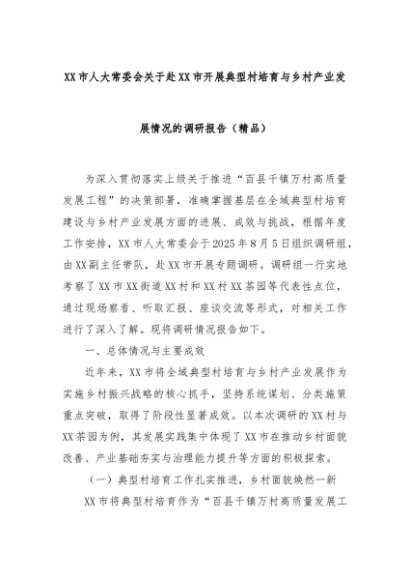 【七哥公文】2025年:XX市人大常委会关于赴XX市开展典型村培育与乡村产业发展情况的调研报告(精品)+更多免费公文+VX:QiGeGongWen2024