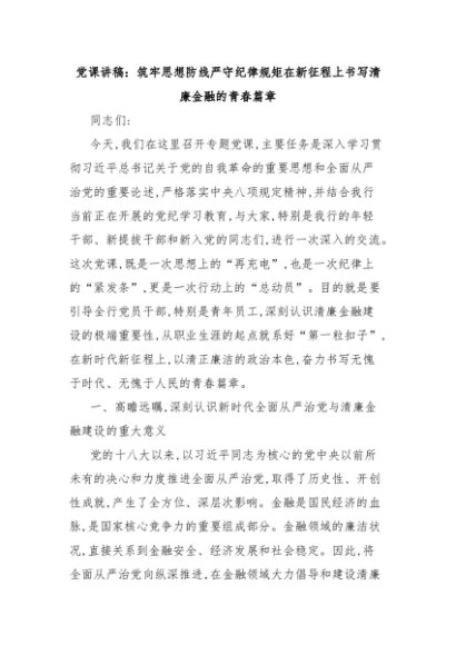 【七哥公文】2025年:党课讲稿:筑牢思想防线严守纪律规矩在新征程上书写清廉金融的青春篇章+更多免费公文+VX:QiGeGongWen2024