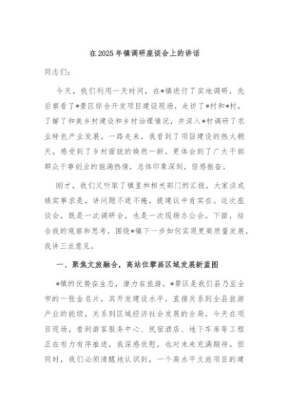 / 【七哥公文】2025年:在2025年镇调研座谈会上的讲话+更多免费公文+VX:QiGeGongWen2024