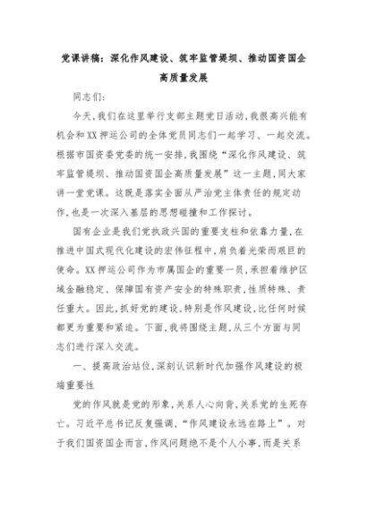 【七哥公文】2025年:党课讲稿:深化作风建设、筑牢监管堤坝、推动国资国企高质量发展+更多免费公文+VX:QiGeGongWen2024