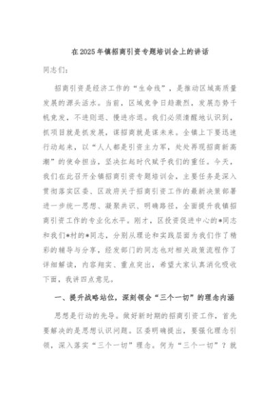 / 【七哥公文】2025年:在2025年镇招商引资专题培训会上的讲话+更多免费公文+VX:QiGeGongWen2024