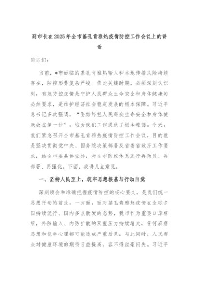 【七哥公文】2025年:副市长在2025年全市基孔肯雅热疫情防控工作会议上的讲话+更多免费公文+VX:QiGeGongWen2024