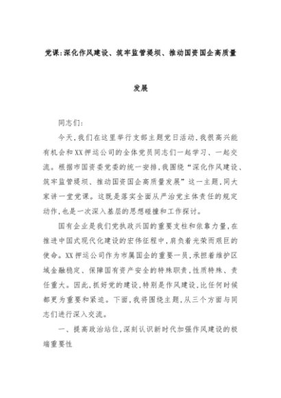 【七哥公文】2025年:党课:深化作风建设、筑牢监管堤坝、推动国资国企高质量发展+更多免费公文+VX:QiGeGongWen2024
