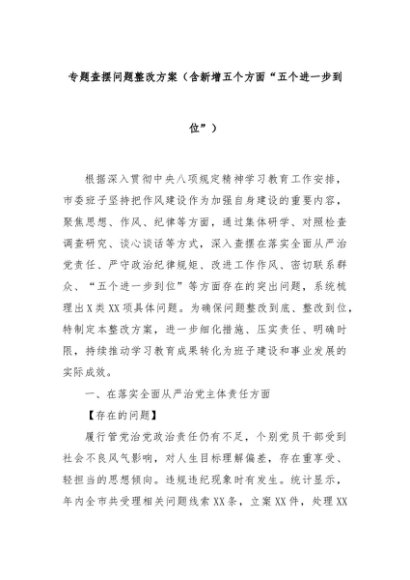 【七哥公文】2025年:专题查摆问题整改方案(含新增五个方面“五个进一步到位”)+更多免费公文+VX:QiGeGongWen2024