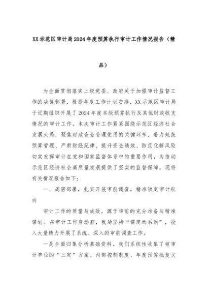 【七哥公文】2025年:XX示范区审计局2024年度预算执行审计工作情况报告(精品)+更多免费公文+VX:QiGeGongWen2024
