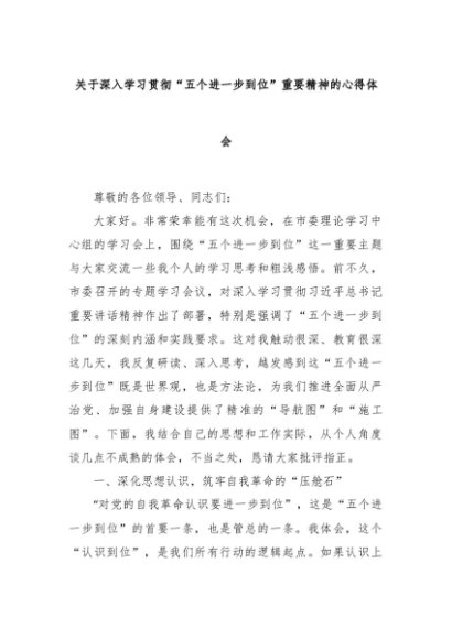 【七哥公文】2025年:关于深入学习贯彻“五个进一步到位”重要精神的心得体会+更多免费公文+VX:QiGeGongWen2024