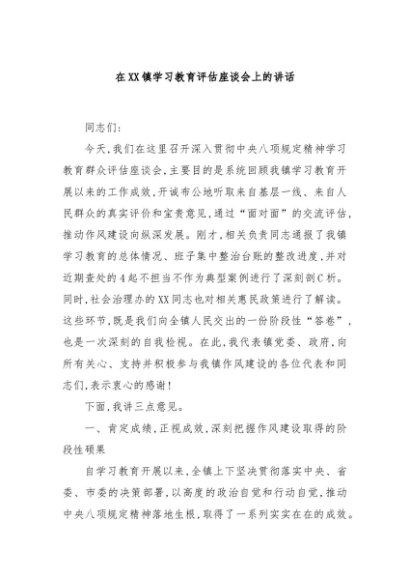 / 【七哥公文】2025年:在XX镇学习教育评估座谈会上的讲话+更多免费公文+VX:QiGeGongWen2024