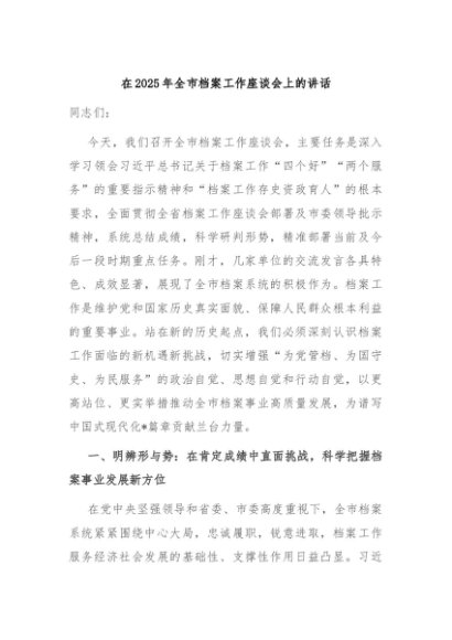 / 【七哥公文】2025年:在2025年全市档案工作座谈会上的讲话+更多免费公文+VX:QiGeGongWen2024