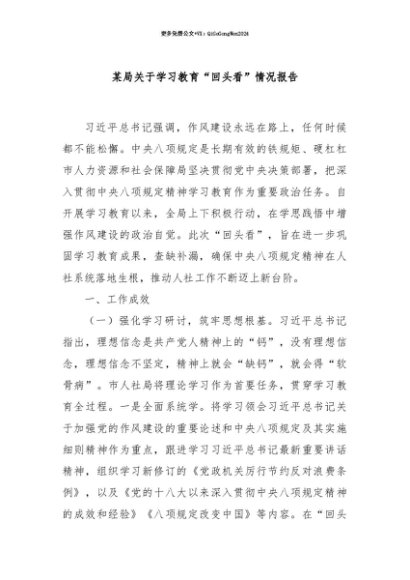 【七哥公文】2025年:【七哥公文】某局关于学习教育“回头看”情况报告+更多免费公文+VX:QiGeGongWen2024+更多免费公文+VX:QiGeGongWen2024