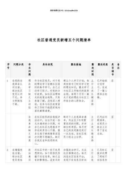 【七哥公文】2025年:【七哥公文】社区普通党员新增五个问题清单+更多免费公文+VX:QiGeGongWen2024+更多免费公文+VX:QiGeGongWen2024