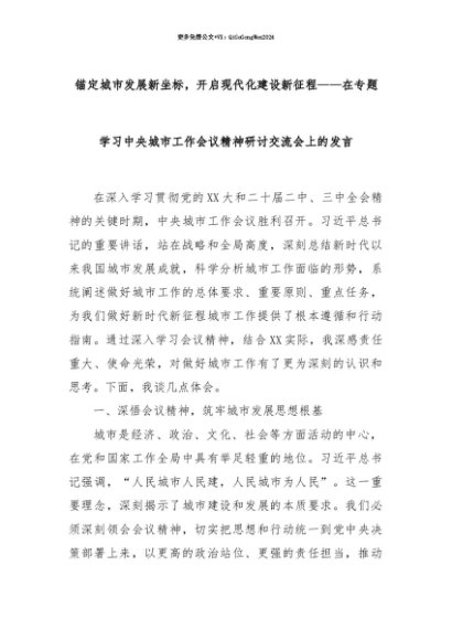 【七哥公文】2025年:【七哥公文】锚定城市发展新坐标,开启现代化建设新征程——在专题学习中央城市工作会议精神研讨交流会上的发言+更多免费公文+VX:QiGeGongWen2024+更多免费公文+VX:QiGeGongWen2024