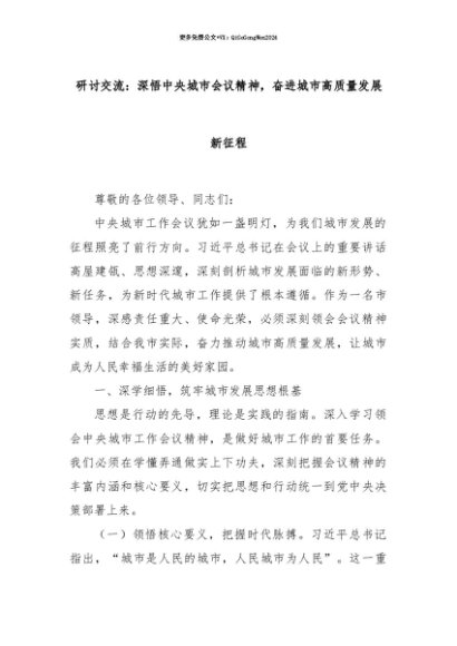 【七哥公文】2025年:【七哥公文】研讨交流:深悟中央城市会议精神,奋进城市高质量发展新征程+更多免费公文+VX:QiGeGongWen2024+更多免费公文+VX:QiGeGongWen2024