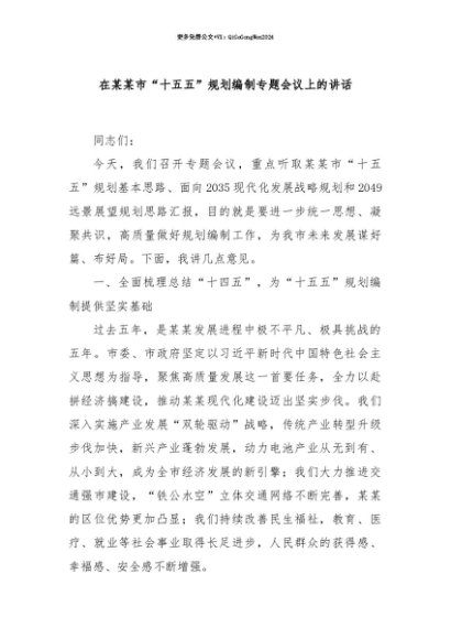 【七哥公文】2025年:【七哥公文】在某某市“十五五”规划编制专题会议上的讲话+更多免费公文+VX:QiGeGongWen2024+更多免费公文+VX:QiGeGongWen2024