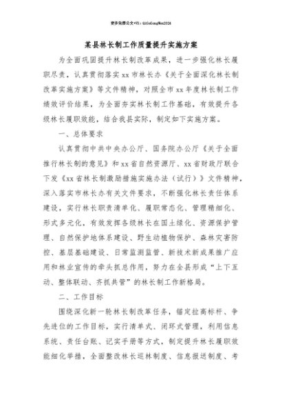 【七哥公文】2025年:【七哥公文】某县林长制工作质量提升实施方案+更多免费公文+VX:QiGeGongWen2024+更多免费公文+VX:QiGeGongWen2024