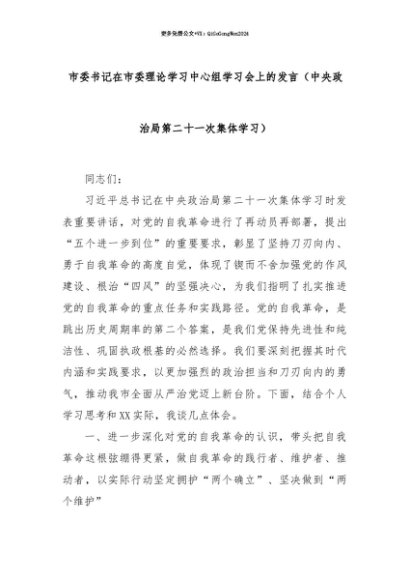 【七哥公文】2025年:【七哥公文】市委书记在市委理论学习中心组学习会上的发言(中央政治局第二十一次集体学习)+更多免费公文+VX:QiGeGongWen2024+更多免费公文+VX:QiGeGongWen2024