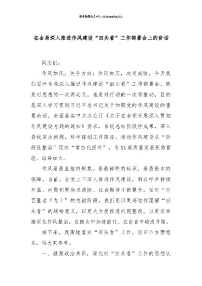 【七哥公文】2025年:【七哥公文】在全局深入推进作风建设“回头看”工作部署会上的讲话+更多免费公文+VX:QiGeGongWen2024+更多免费公文+VX:QiGeGongWen2024