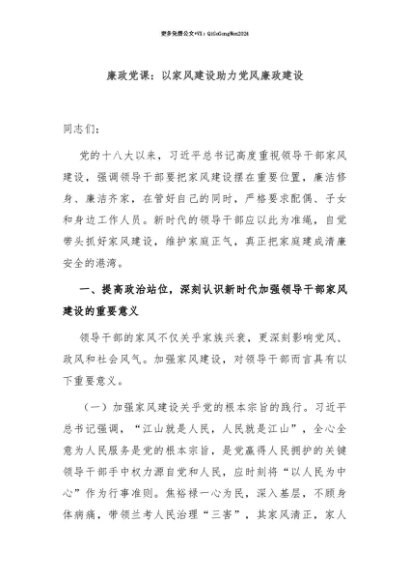 【七哥公文】2025年:【七哥公文】廉政党课:以家风建设助力党风廉政建设+更多免费公文+VX:QiGeGongWen2024+更多免费公文+VX:QiGeGongWen2024