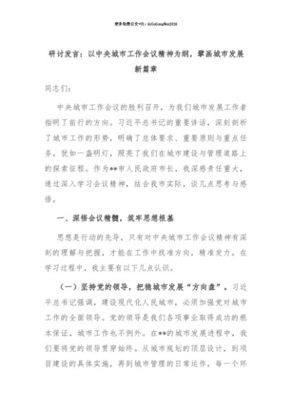 【七哥公文】2025年:【七哥公文】研讨发言:以中央城市工作会议精神为纲,擘画城市发展新篇章+更多免费公文+VX:QiGeGongWen2024+更多免费公文+VX:QiGeGongWen2024