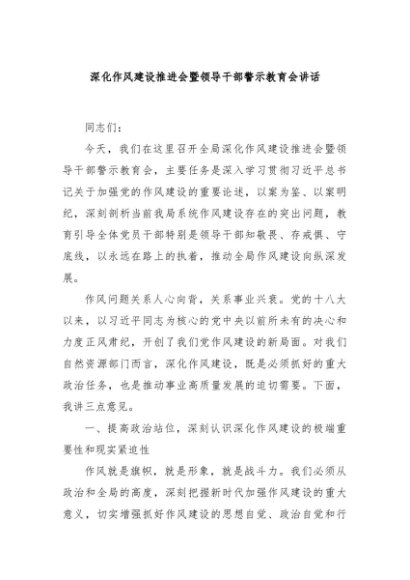 / 【七哥公文】2025年:深化作风建设推进会暨领导干部警示教育会讲话+更多免费公文+VX:QiGeGongWen2024