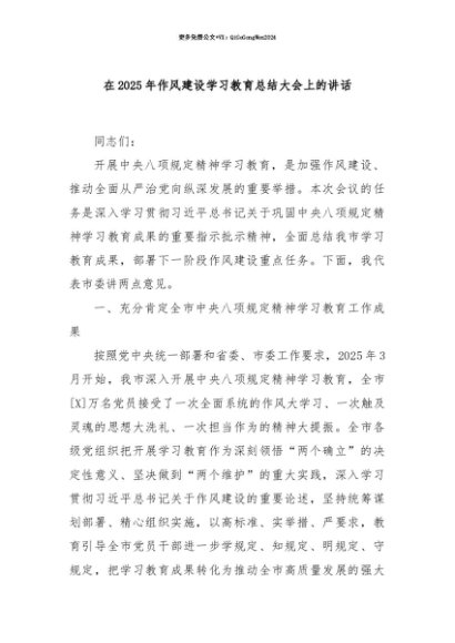 【七哥公文】2025年:【七哥公文】在2025年作风建设学习教育总结大会上的讲话+更多免费公文+VX:QiGeGongWen2024+更多免费公文+VX:QiGeGongWen2024