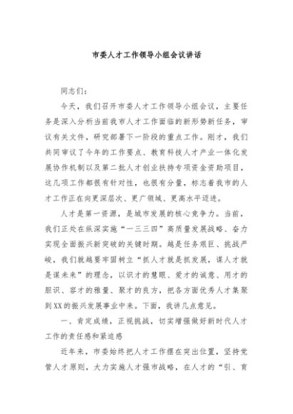 / 【七哥公文】2025年:市委人才工作领导小组会议讲话+更多免费公文+VX:QiGeGongWen2024