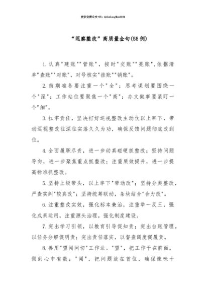 【七哥公文】2025年:【七哥公文】(55例)“巡察整改”高质量金句+更多免费公文+VX:QiGeGongWen2024+更多免费公文+VX:QiGeGongWen2024