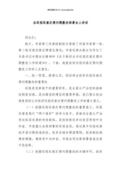 【七哥公文】2025年:【七哥公文】在巡视巡察反馈问题整改部署会上讲话+更多免费公文+VX:QiGeGongWen2024+更多免费公文+VX:QiGeGongWen2024