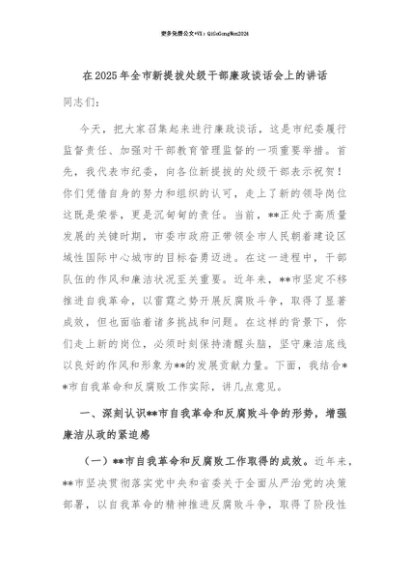 【七哥公文】2025年:【七哥公文】在2025年全市新提拔处级干部廉政谈话会上的讲话+更多免费公文+VX:QiGeGongWen2024+更多免费公文+VX:QiGeGongWen2024