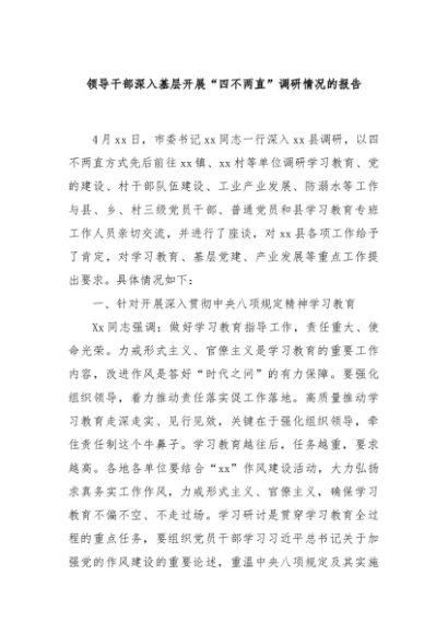 【七哥公文】2025年:领导干部深入基层开展“四不两直”调研情况的报告(产业)+更多免费公文+VX:QiGeGongWen2024