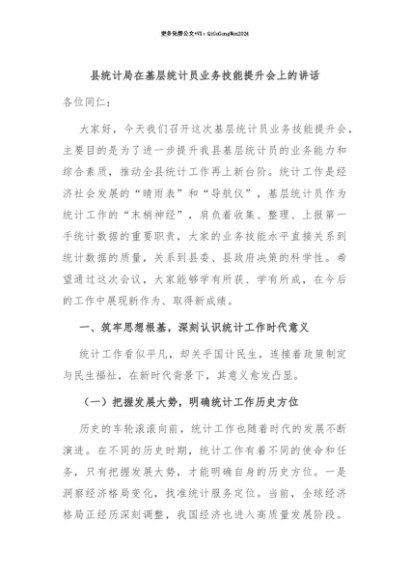 【七哥公文】2025年:【七哥公文】县统计局在基层统计员业务技能提升会上的讲话+更多免费公文+VX:QiGeGongWen2024+更多免费公文+VX:QiGeGongWen2024