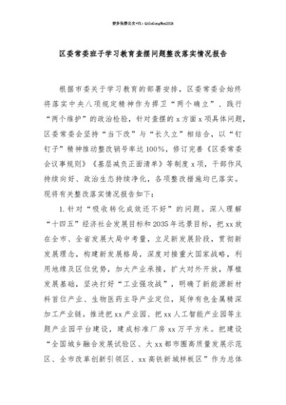 【七哥公文】2025年:【七哥公文】区委常委班子学习教育查摆问题整改落实情况报告+更多免费公文+VX:QiGeGongWen2024+更多免费公文+VX:QiGeGongWen2024