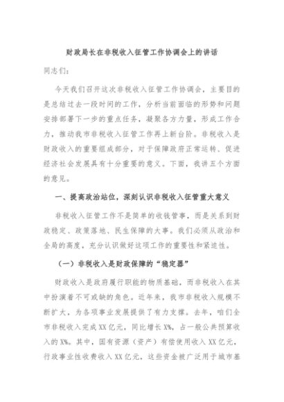 / 【七哥公文】2025年:财政局长在非税收入征管工作协调会上的讲话+更多免费公文+VX:QiGeGongWen2024