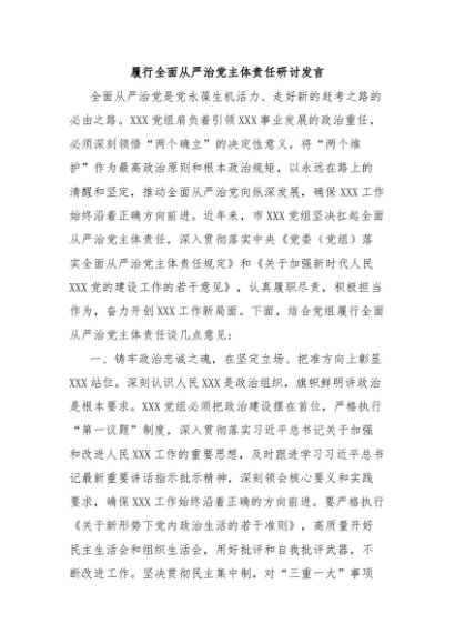 / 【七哥公文】2025年:履行全面从严治党主体责任研讨发言+更多免费公文+VX:QiGeGongWen2024