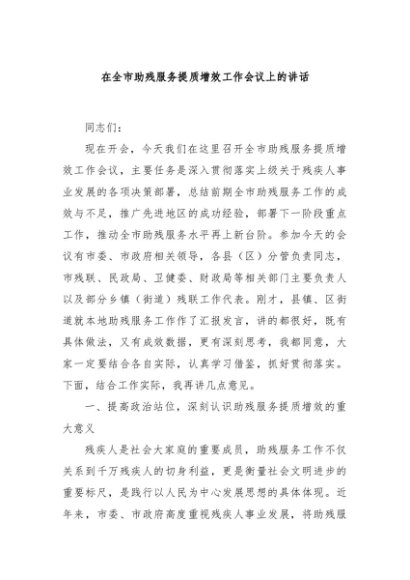 / 【七哥公文】2025年:在全市助残服务提质增效工作会议上的讲话+更多免费公文+VX:QiGeGongWen2024