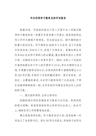 / 【七哥公文】2025年:市水利局学习教育总结评估报告+更多免费公文+VX:QiGeGongWen2024