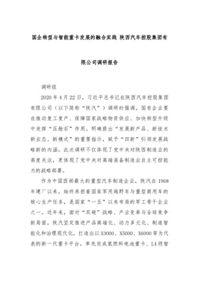 【七哥公文】2025年:国企转型与智能重卡发展的融合实践 陕西汽车控股集团有限公司调研报告+更多免费公文+VX:QiGeGongWen2024