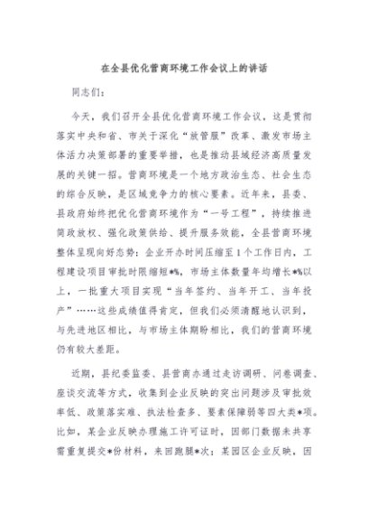 / 【七哥公文】2025年:在全县优化营商环境工作会议上的讲话+更多免费公文+VX:QiGeGongWen2024