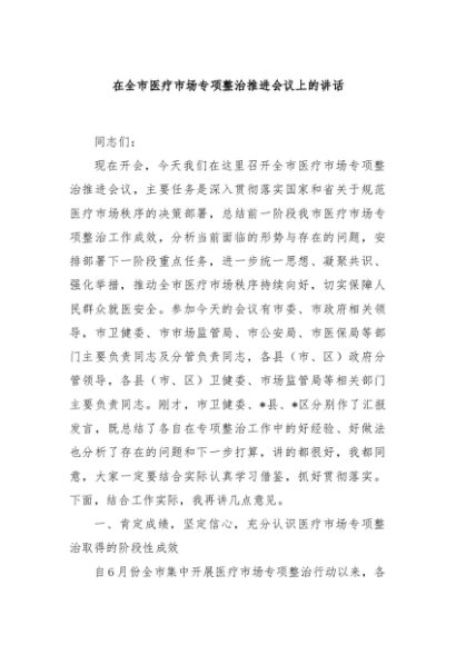 / 【七哥公文】2025年:在全市医疗市场专项整治推进会议上的讲话+更多免费公文+VX:QiGeGongWen2024