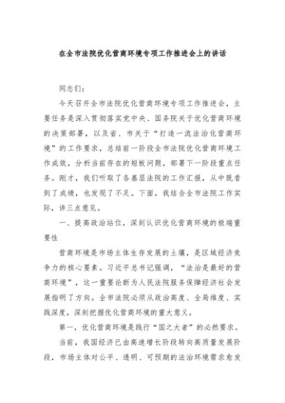 / 【七哥公文】2025年:在全市法院优化营商环境专项工作推进会上的讲话+更多免费公文+VX:QiGeGongWen2024