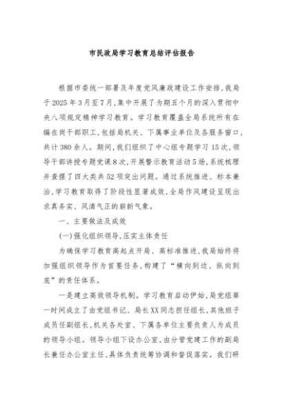 【七哥公文】2025年:市民政局学习教育总结评估报告+更多免费公文+VX:QiGeGongWen2024