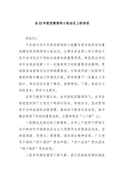 / 【七哥公文】2025年:在XX市委党建领导小组会议上的讲话+更多免费公文+VX:QiGeGongWen2024