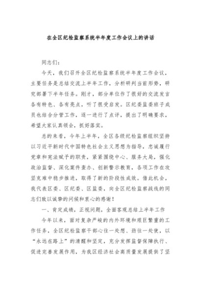 / 【七哥公文】2025年:在全区纪检监察系统半年度工作会议上的讲话+更多免费公文+VX:QiGeGongWen2024