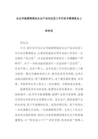 【七哥公文】2025年:在全市能源领域安全生产治本攻坚三年行动专题调度会上的讲话+更多免费公文+VX:QiGeGongWen2024