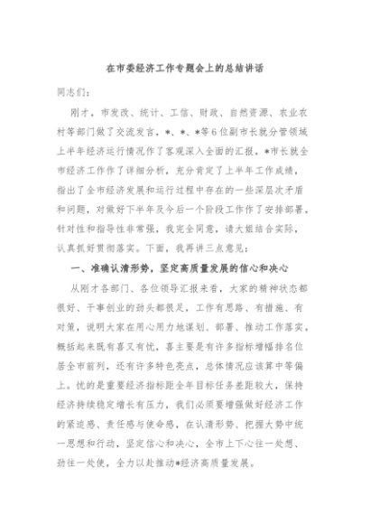 / 【七哥公文】2025年:在市委经济工作专题会上的总结讲话+更多免费公文+VX:QiGeGongWen2024