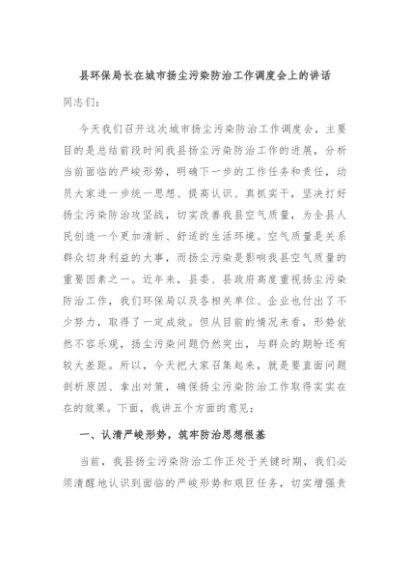 / 【七哥公文】2025年:县环保局长在城市扬尘污染防治工作调度会上的讲话+更多免费公文+VX:QiGeGongWen2024