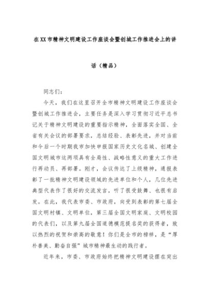 【七哥公文】2025年:在XX市精神文明建设工作座谈会暨创城工作推进会上的讲话(精品)+更多免费公文+VX:QiGeGongWen2024