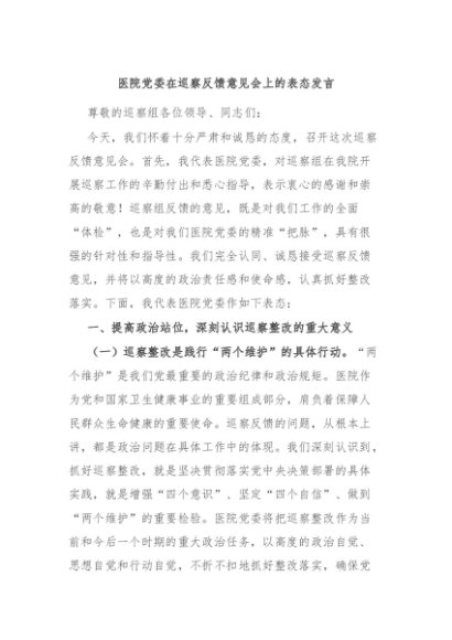 / 【七哥公文】2025年:医院党委在巡察反馈意见会上的表态发言+更多免费公文+VX:QiGeGongWen2024