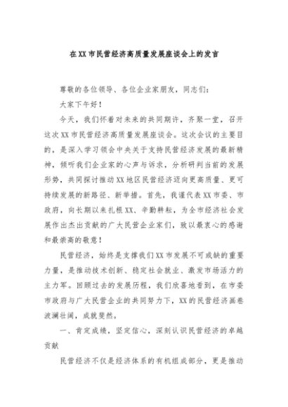 / 【七哥公文】2025年:在XX市民营经济高质量发展座谈会上的发言+更多免费公文+VX:QiGeGongWen2024