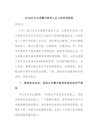 / 【七哥公文】2025年:在2025年全局警示教育大会上的讲话提纲+更多免费公文+VX:QiGeGongWen2024