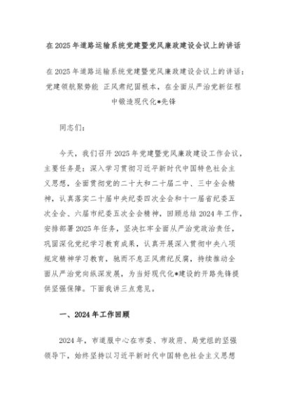 【七哥公文】2025年:在2025年道路运输系统党建暨党风廉政建设会议上的讲话+更多免费公文+VX:QiGeGongWen2024